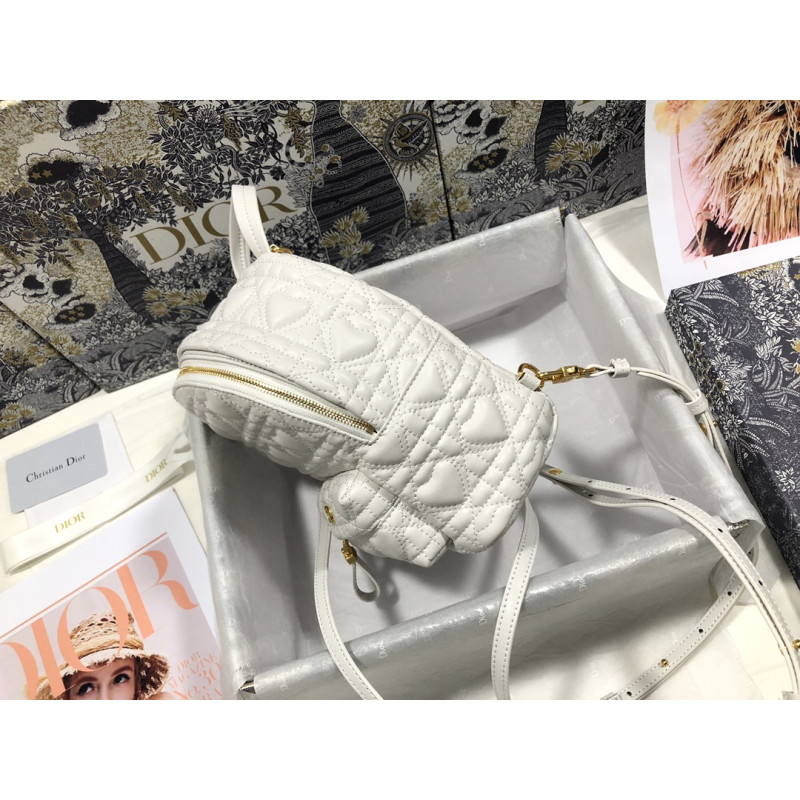 DetailCannage topstitching, 'CD' logo on front pockets and zip closure, and subtle antiqued gold-finish metal rings. Convenient for hooking small leather goods from the collection. With two adjustable shoulder straps, it can be carried on both shoulders, or one shoulder strap can be removed to carry it on one shoulder or crossbody.