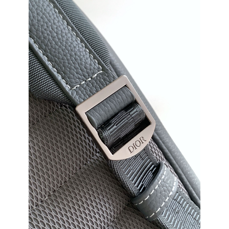 DetailThis saddle flap backpack features a stylish original design that highlights the signature saddle silhouette. Crafted from deep gray grained calfskin with contrasting topstitching, it is adorned with a Dior signature on the front. The spacious interior includes a main compartment for storing daily essentials, while the front saddle flap pocket with an aluminum buckle offers convenient access to items such as a wallet, keys, earbuds, or phone.