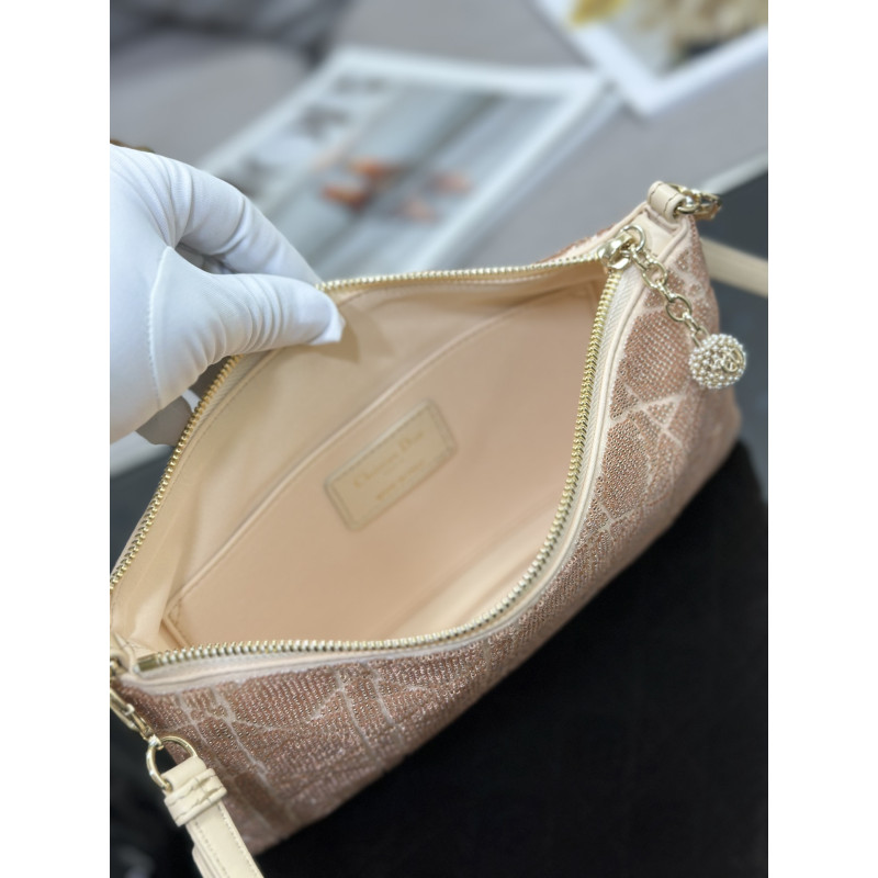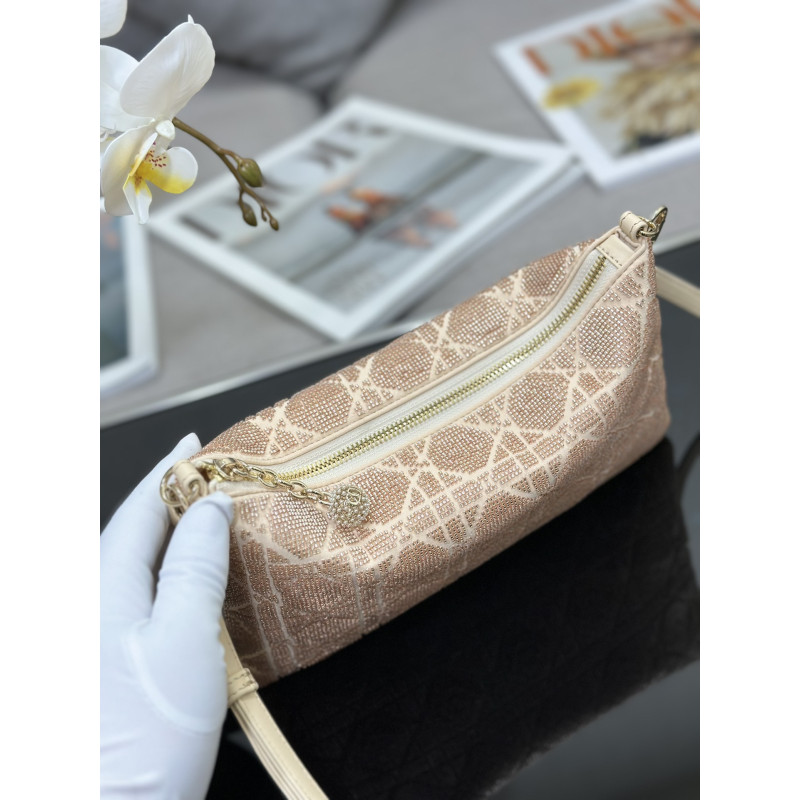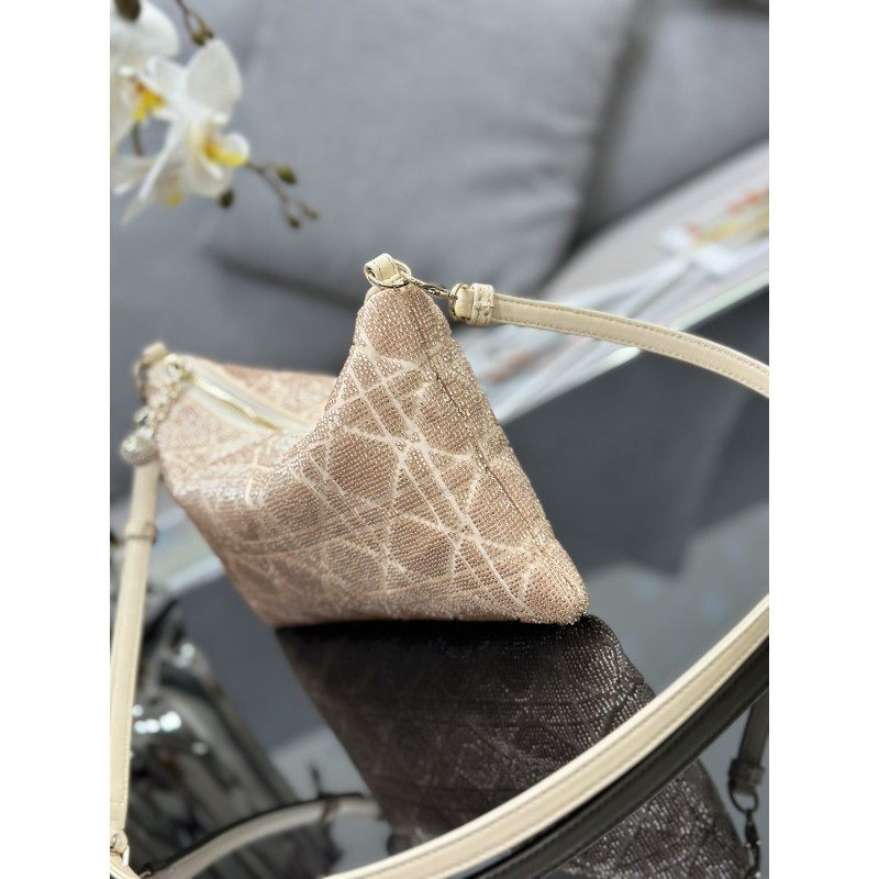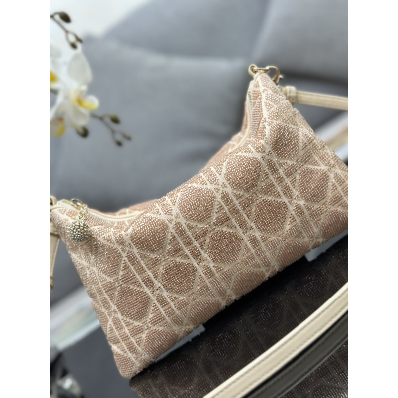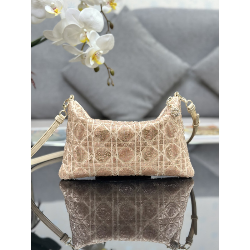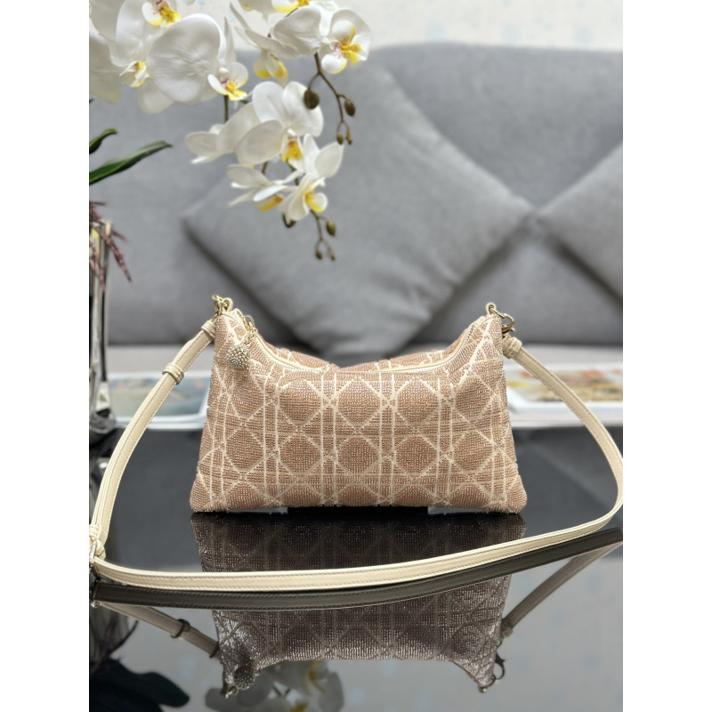 DetailIt features a classic cannage pattern. Hand-embroidered with 2mm glass beads. The adjustable and detachable leather spaghetti strap adds sophistication and adds elegance to evening looks.