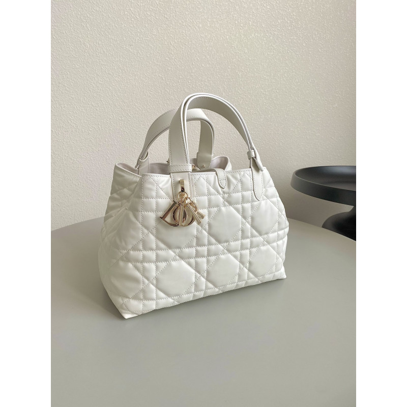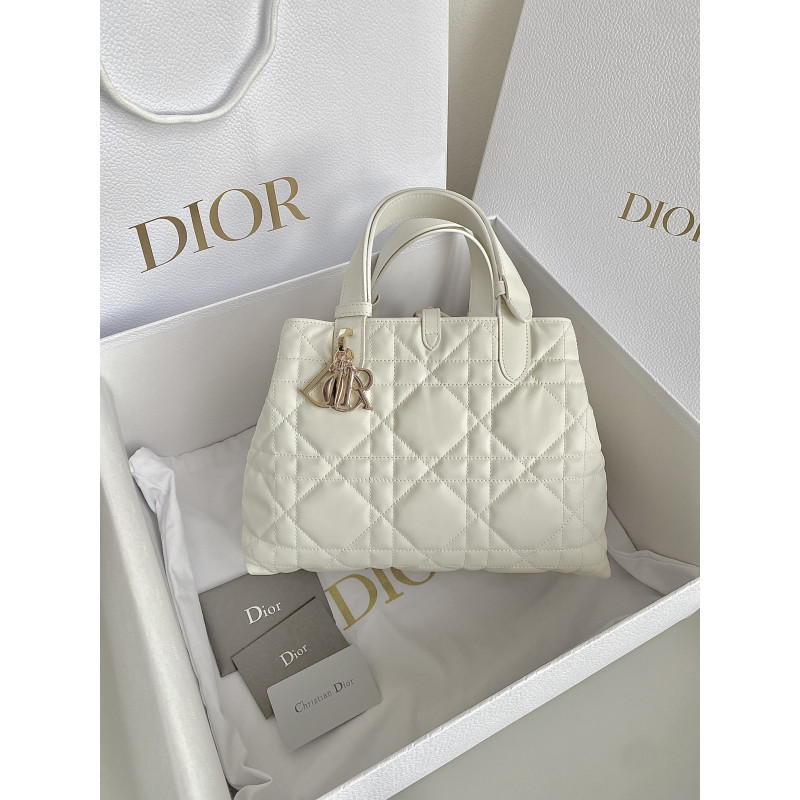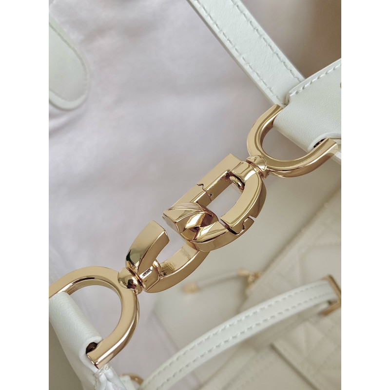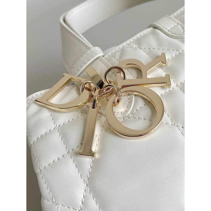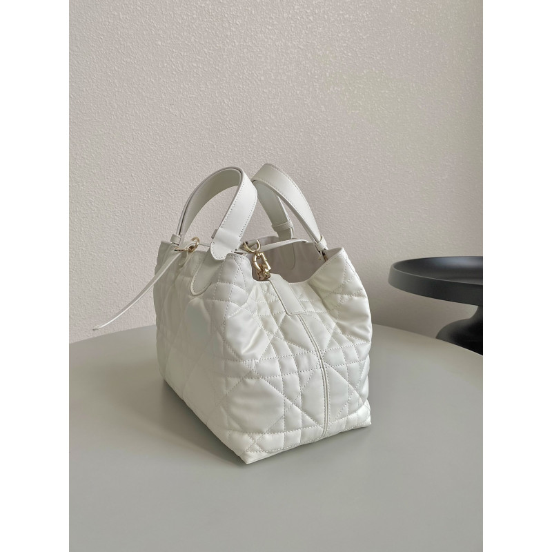 Oversized cannage pattern and the customary CD buckle, unlock the buckle to change from a square bag to a large tote bag,