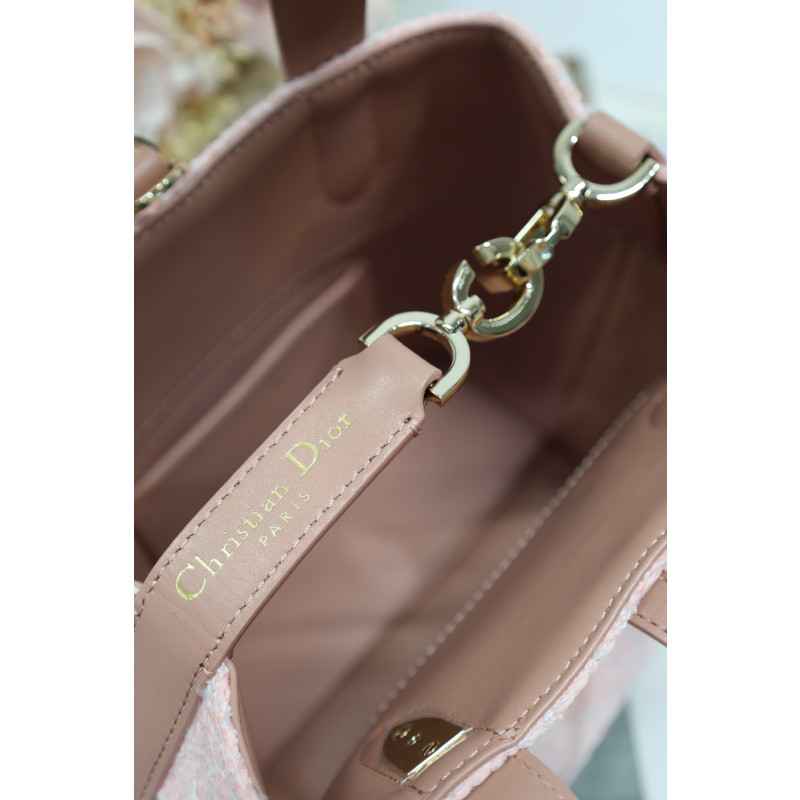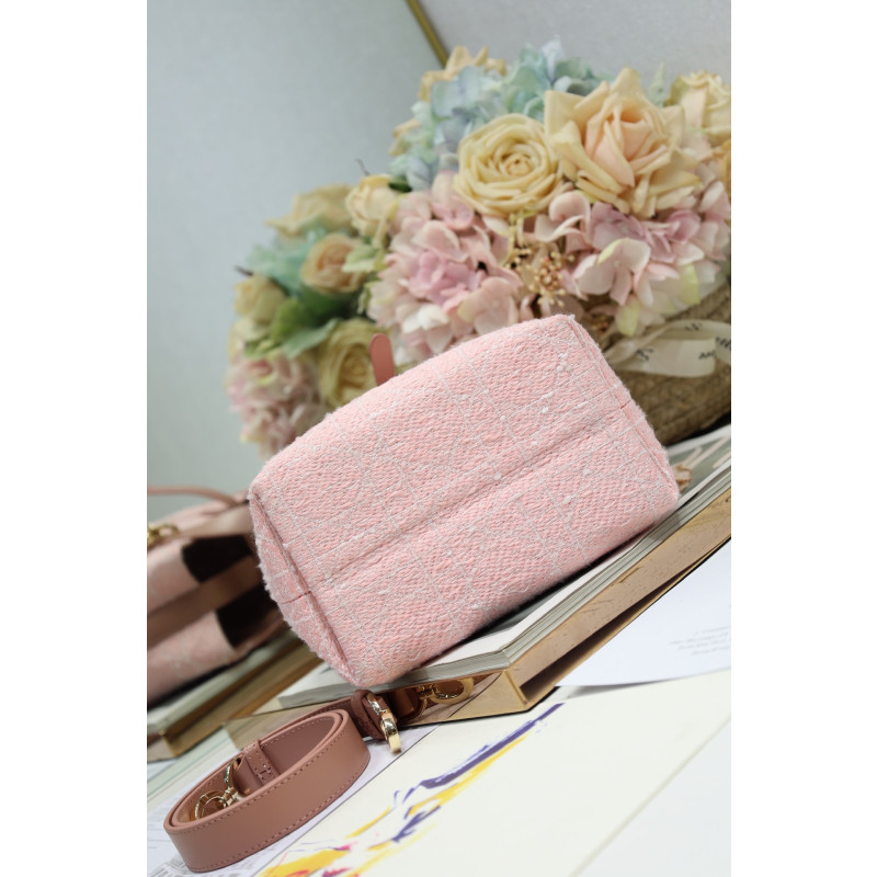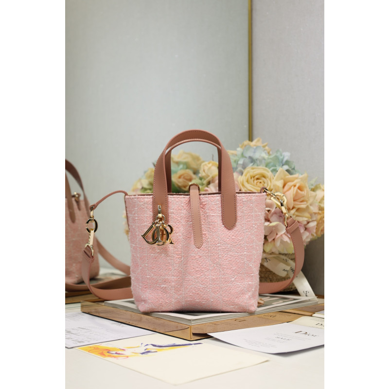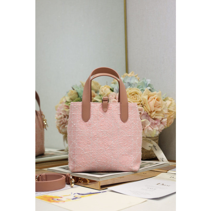 This stylish and practical handbag is crafted from pink tweed and other materials, featuring a white cane-weave pattern. Its spacious interior compartments provide ample storage for daily essentials. Designed with a slim leather drawstring closure, it ensures secure storage for your belongings.