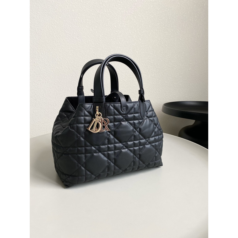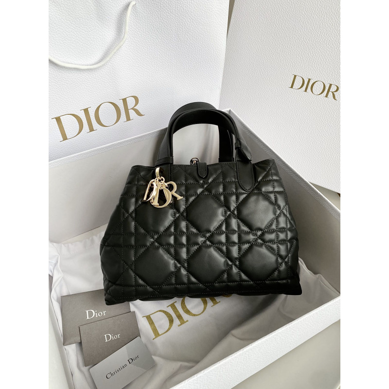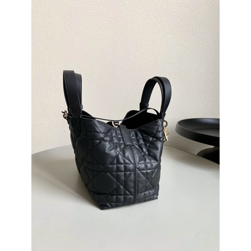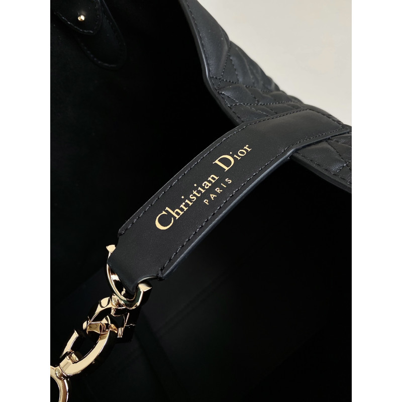 Oversized cannage pattern and the customary CD buckle, unlock the buckle to change from a square bag to a large tote bag,