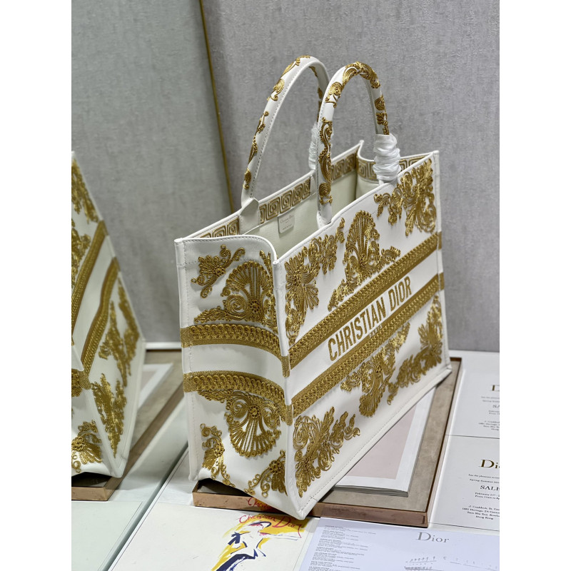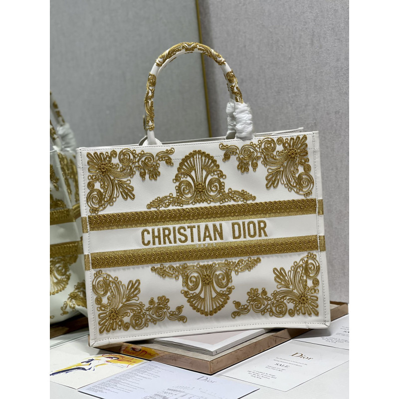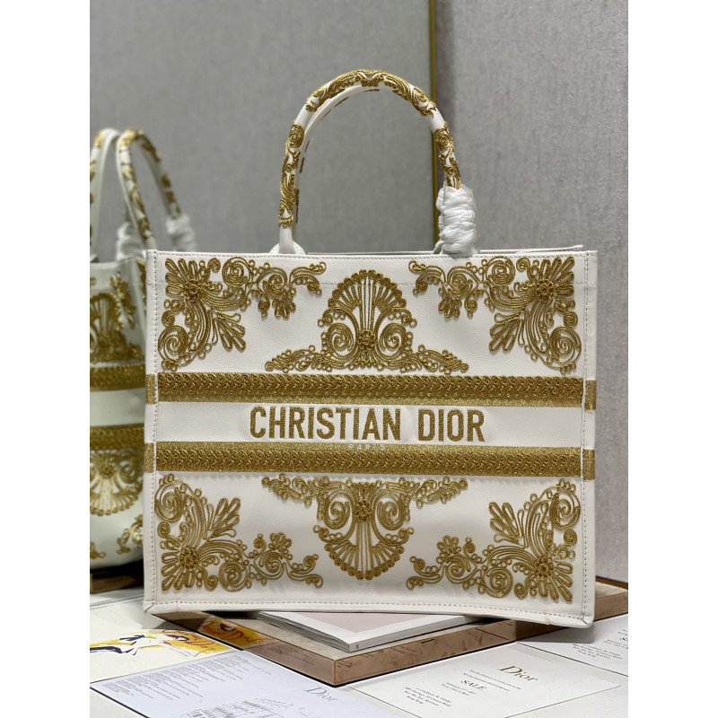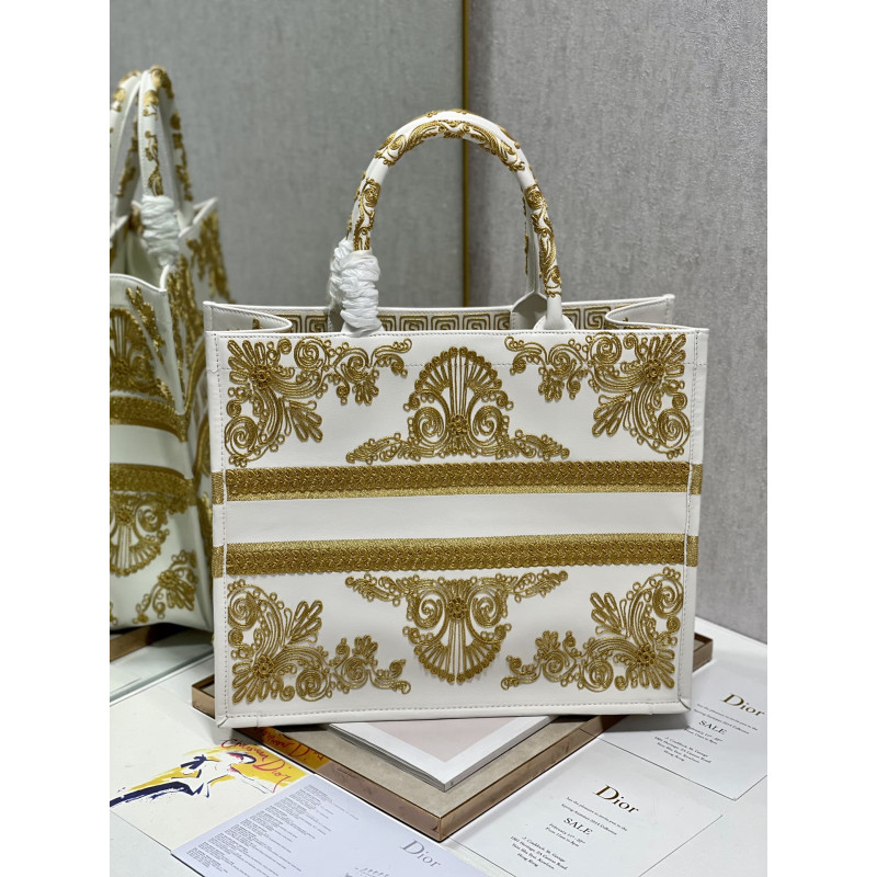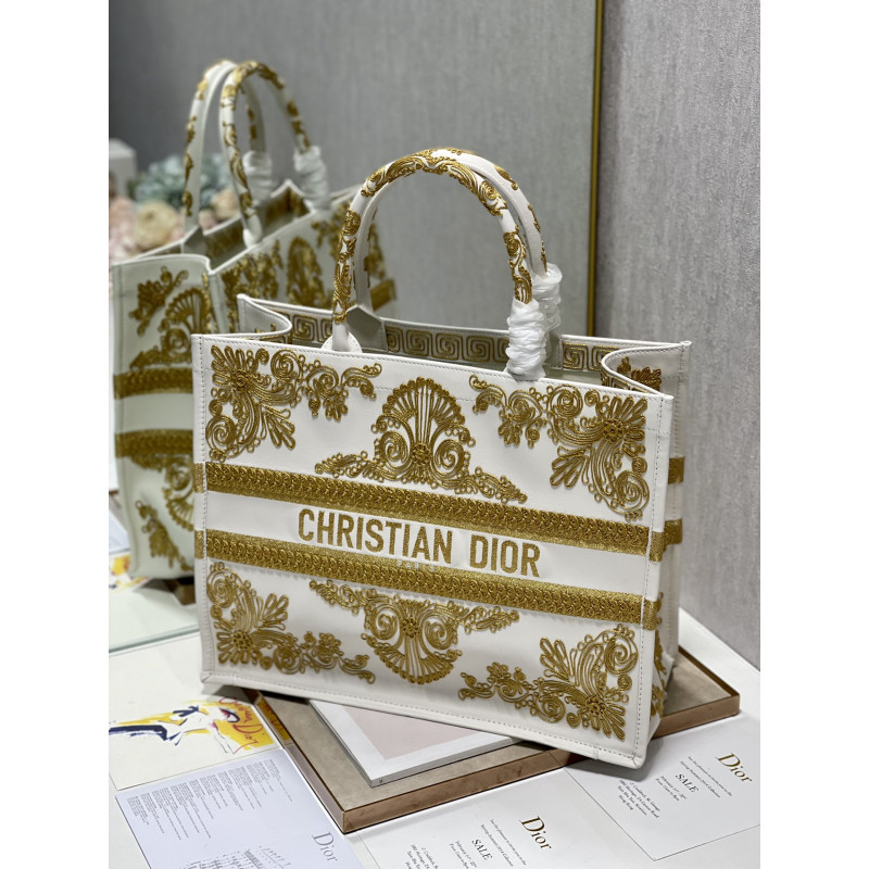 Designed to hold all your daily essentials, this style is fully embroidered with the Toile de Jouy motif and features the Christian Dior Paris signature on the front. The handbag embodies the brand's signature craftsmanship.