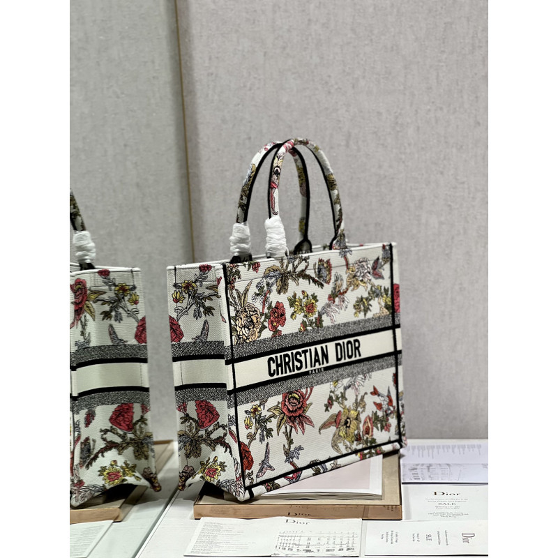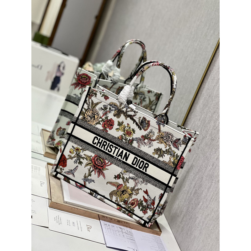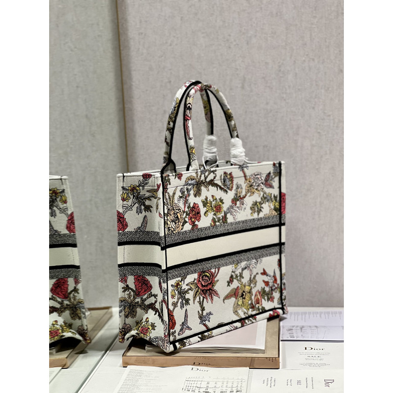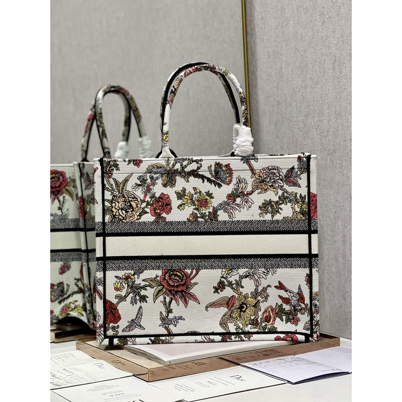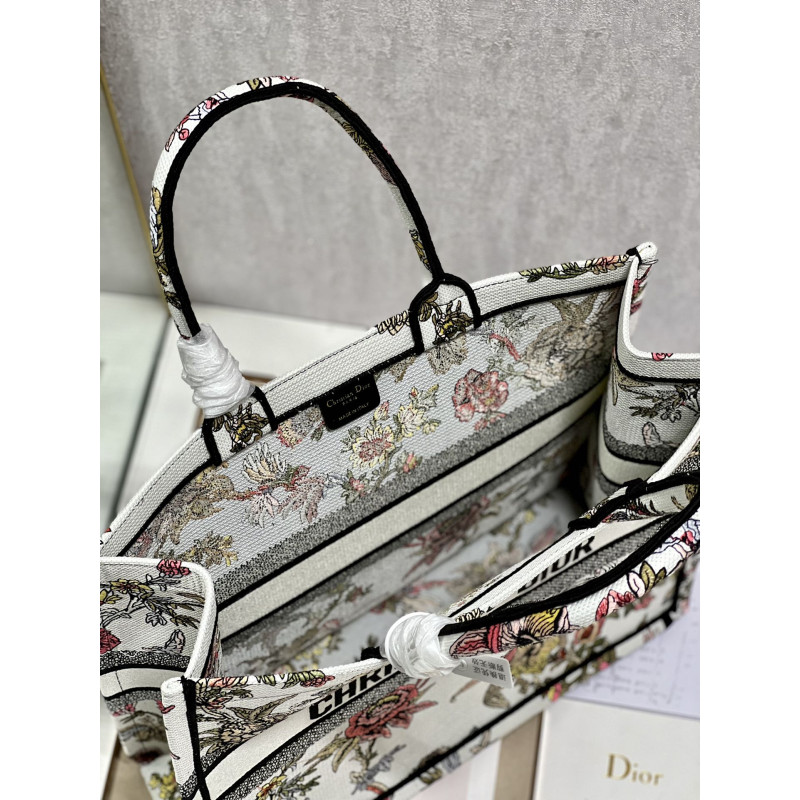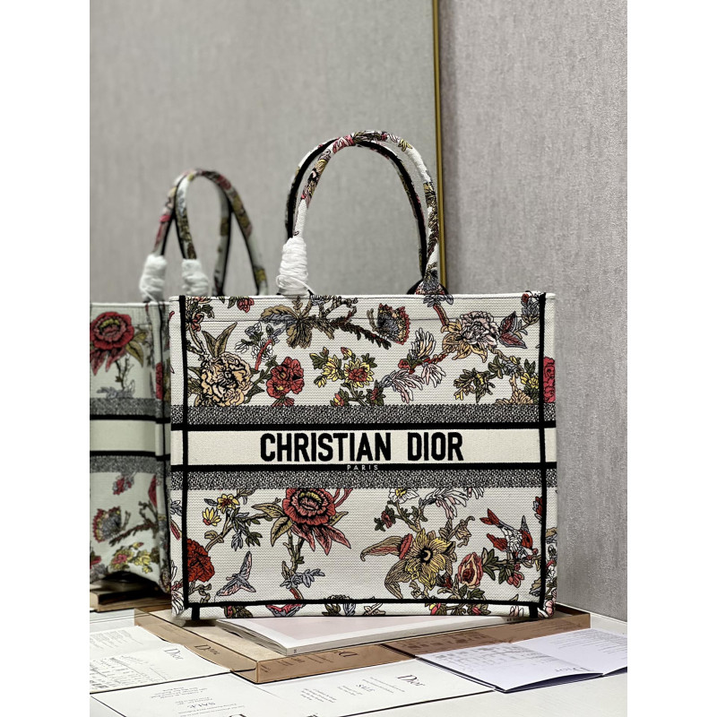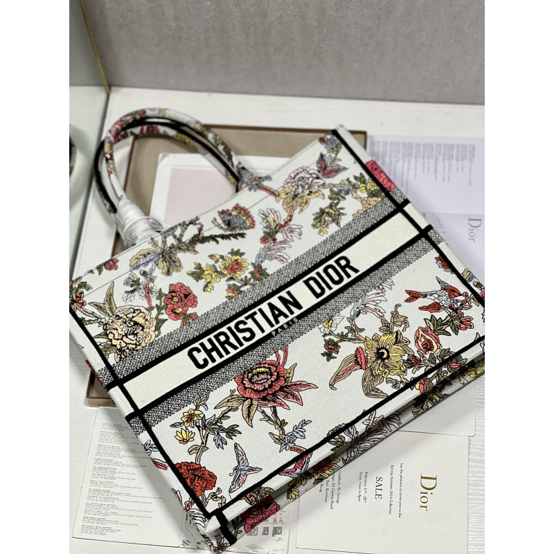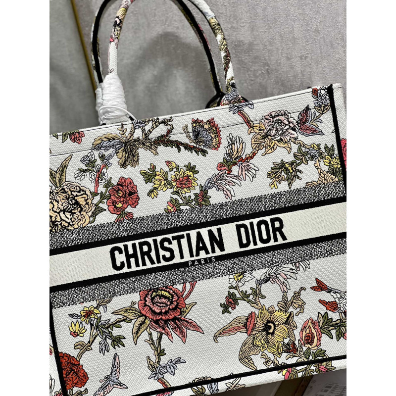 Designed to hold all your daily essentials, it's fully embroidered with the Dior Jardin Botanique motif, showcasing the romantic floral motif of the Granville gardens. The Christian Dior Paris signature adorns the front, reflecting the house's signature craftsmanship.
