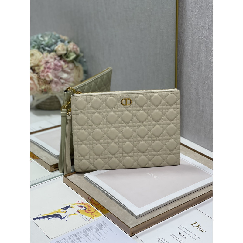 Crafted from black supple calfskin, it features signature Cannage topstitching and 'CD' logo at front. The large pocket holds all your essentials, while the detachable shoulder strap can be carried by hand or carried in a bag.
