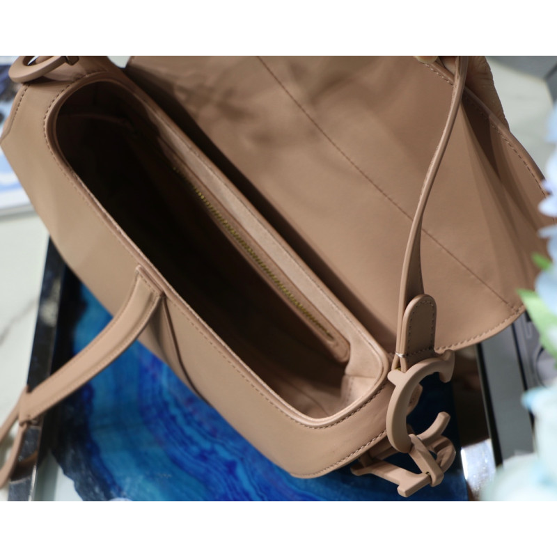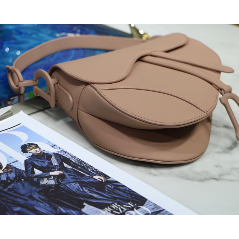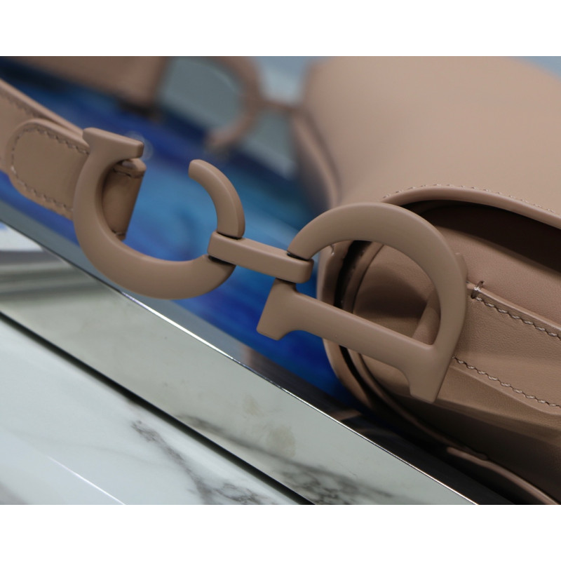 Crafted from calfskin, the legendary design features a saddle flap with a magnetic D-stirrup buckle, as well as a tonal metal CD signature on either side of the strap. This saddle bag has an adjustable and detachable spaghetti strap and can be carried by hand, over the shoulder or across the body.