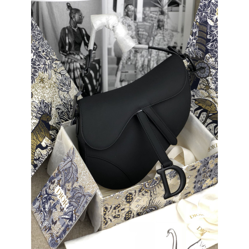 Crafted from calfskin, the legendary design features a saddle flap with a magnetic D-stirrup buckle, as well as a tonal metal CD signature on either side of the strap. This saddle bag has an adjustable and detachable spaghetti strap and can be carried by hand, over the shoulder or across the body.