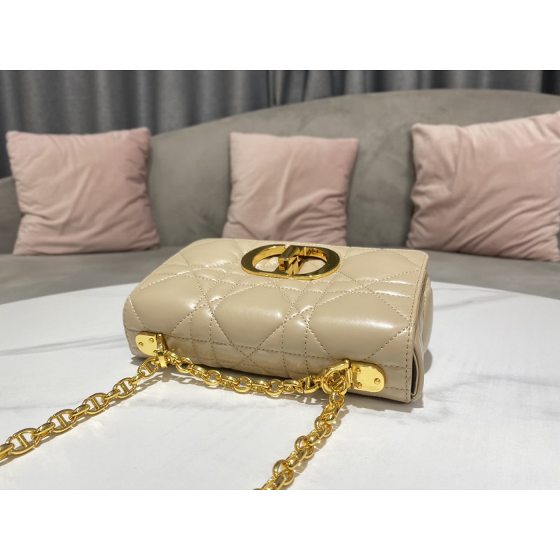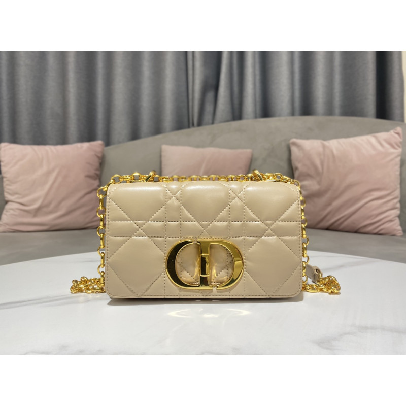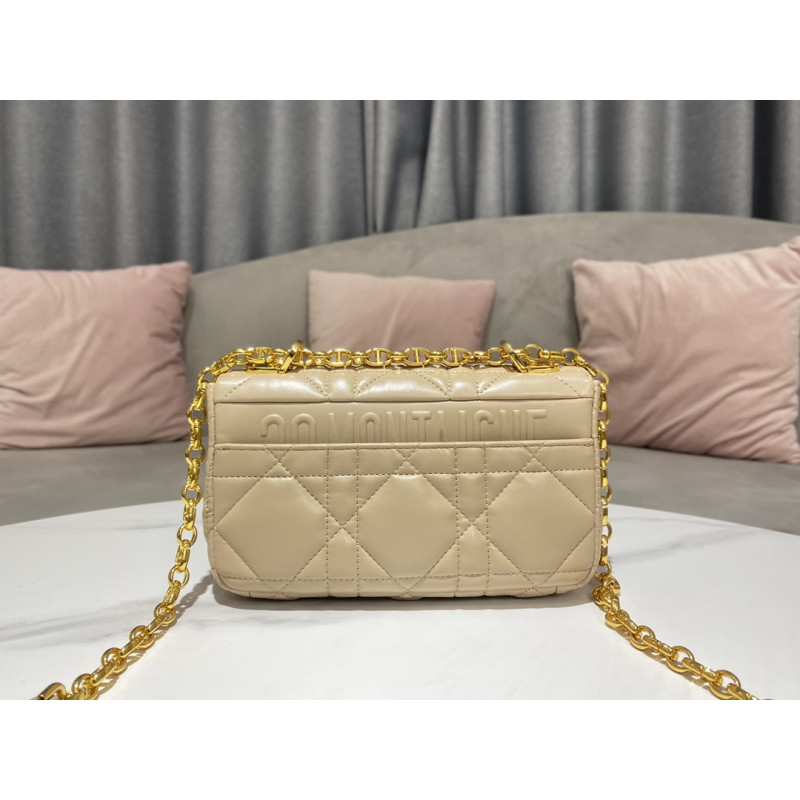 DetailCrafted from calfskin with Cannage stitching. Antique gold-plated metal 'CD' button on the flap, adjustable and detachable chain shoulder strap with 'CD' logo links, can be carried by hand, shoulder or crossbody, and can be matched with different embroidered shoulder straps.