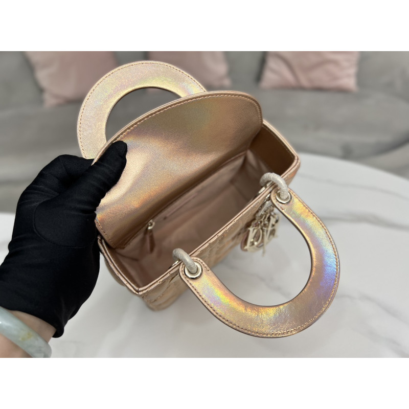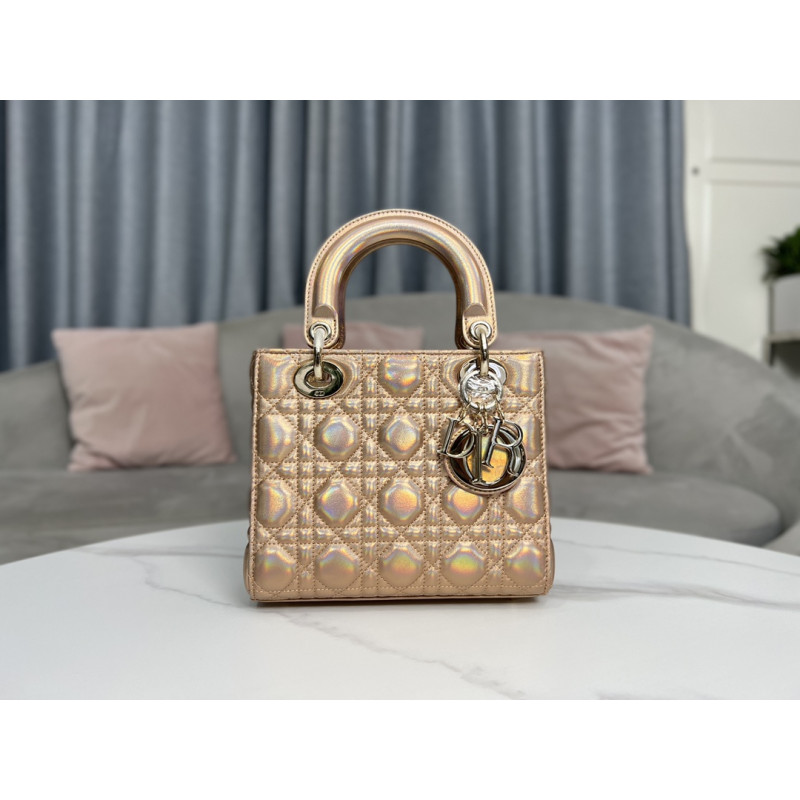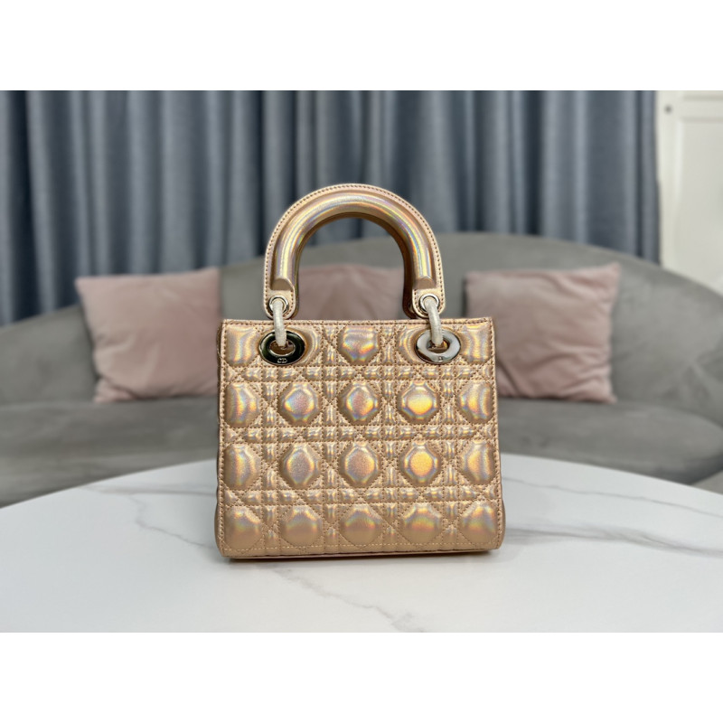Crafted in neon-tone metallic lambskin with bold quilted detailing with cannage topstitching, it features a chic design and interior zipped and patch pockets, and can be carried by hand or cross-body.