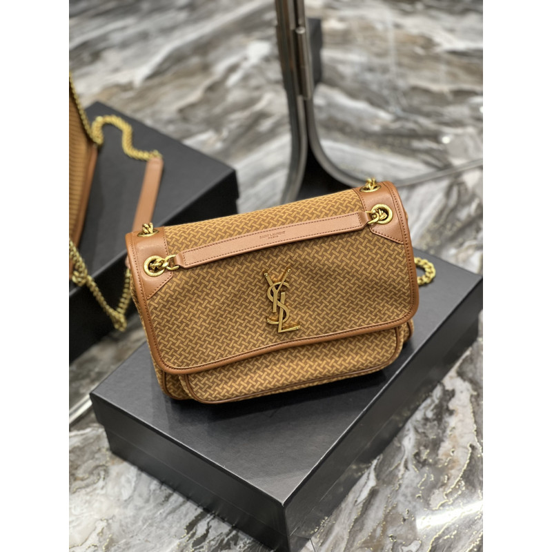 DetailFront flap with magnetic snap closure and signature YSL signature covered in leather. Chain and leather convertible shoulder strap, exterior: a magnetic pocket on the back, interior: 1 main compartment, 1 open pocket, 1 zip pocket, 1 pocket under the flap.