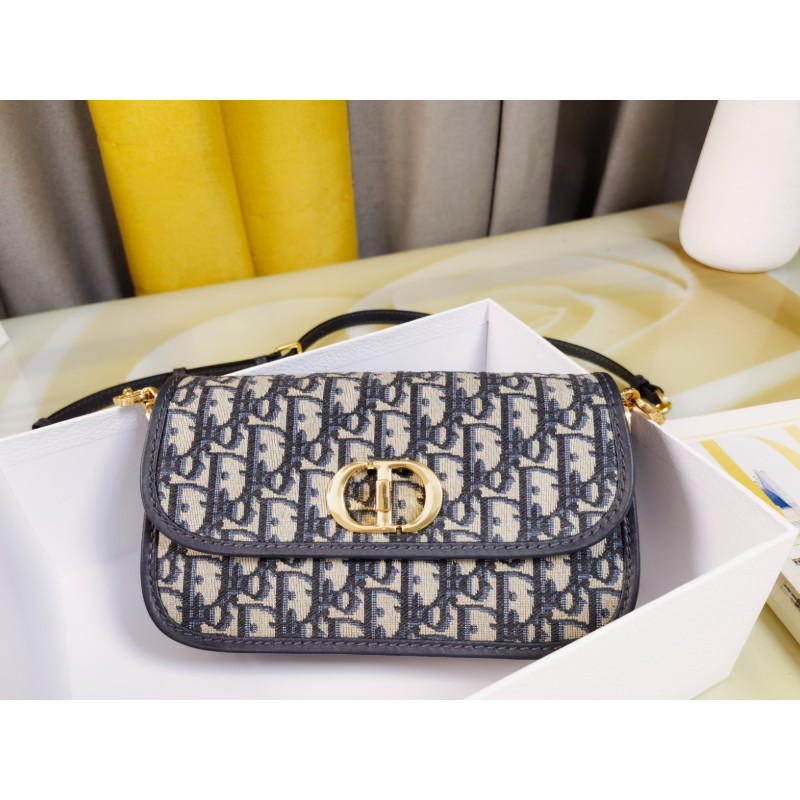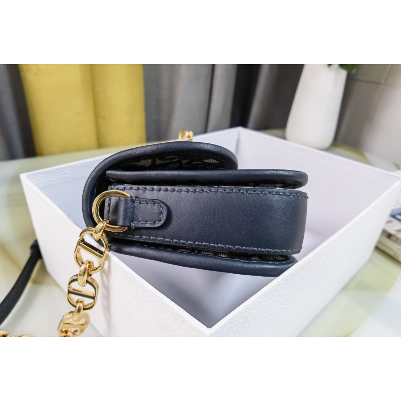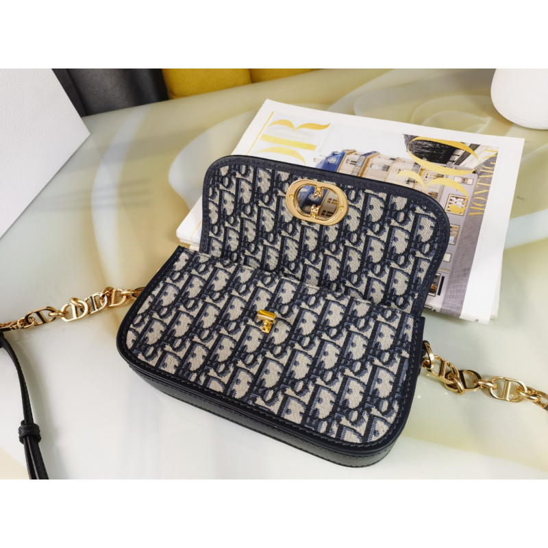 Round flap crafted in calfskin with antiqued gold-plated metal CD clasp, 30 Montaigne logo embossed on the back, and a signature chain with alternating gold-finish metal and tone-on-tone enamel links to match the leather, adjustable. The bag is roomy and refined in shape and can be carried in the hand, over the shoulder or across the body.