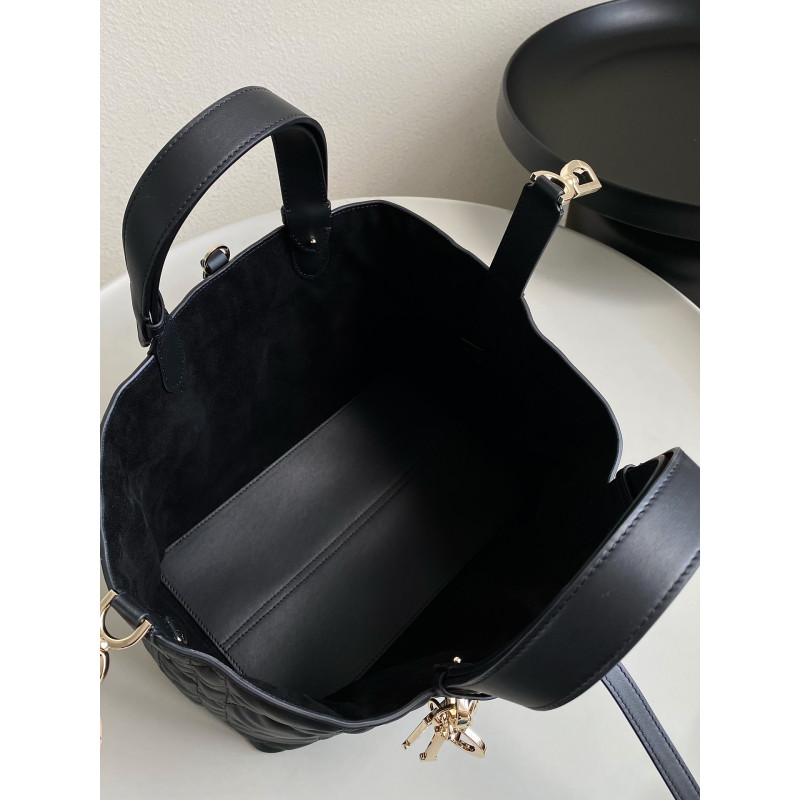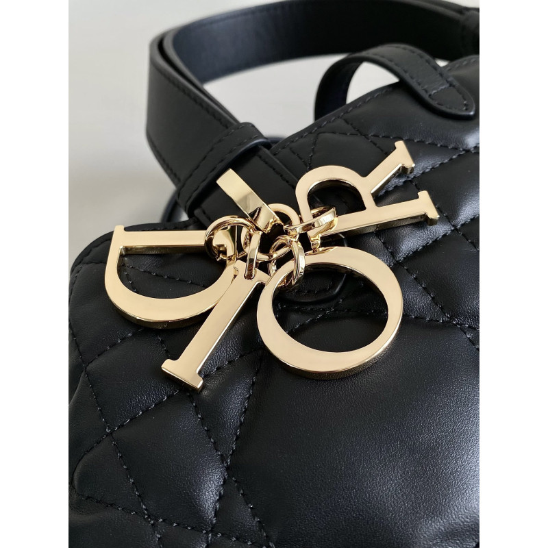 Oversized cannage pattern and the customary CD buckle, unlock the buckle to change from a square bag to a large tote bag,