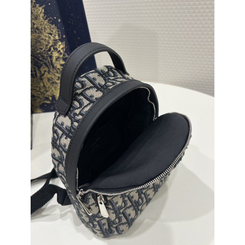 The Dior Oblique Jacquard Rider Backpack has a utilitarian silhouette, with a zipped main compartment and front pocket for all your small essentials, and a metal Dior signature on the front. Lightweight and durable materials, top handles, and adjustable shoulder straps complete this micro backpack that's perfect for kids.