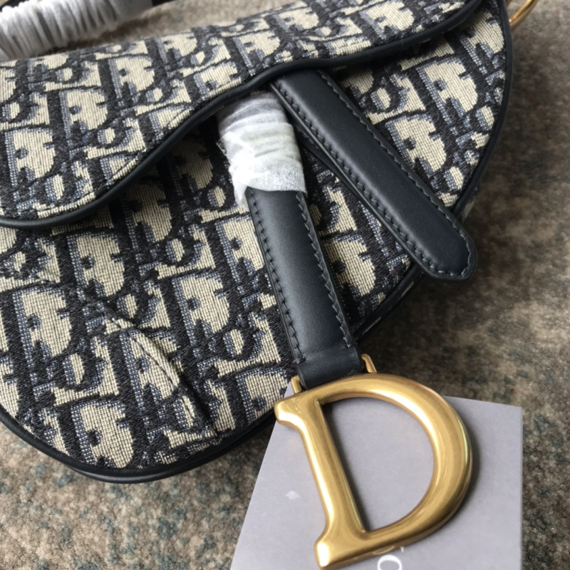 Crafted in Dior Oblique jacquard fabric, it reveals a saddle flap with a magnetic D-shaped stirrup clasp and CD signature in antique gold-finish metal on either side of the shoulder strap. This saddle bag has an adjustable and detachable spaghetti strap and can be carried by hand, over the shoulder or across the body.