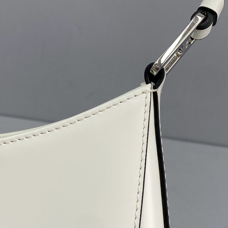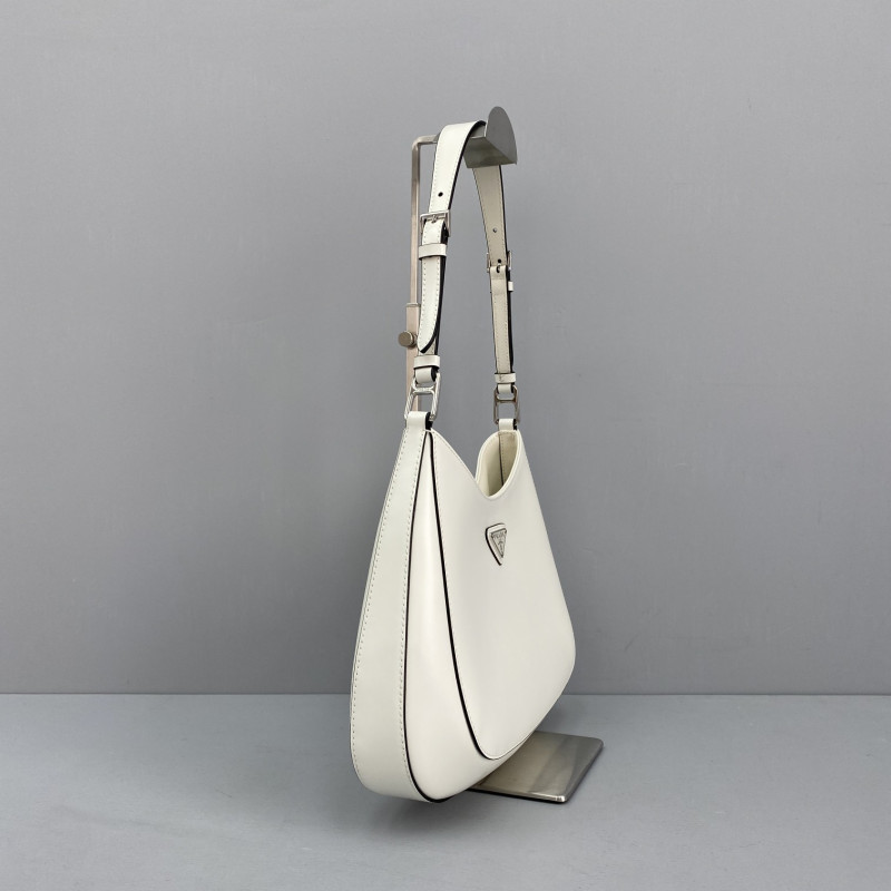 The special beveled structure of the bottom and sides of this flap bag emphasizes the smooth curved lines and gives it a sophisticated appeal, while the extended handles make it even more functional, allowing it to be worn as a shoulder bag or a tote. Brushed leather, unique to the Prada collection, is a modern, color-changing material perfect for new combinations and contrasts. A triangular enameled logo completes the silhouette.