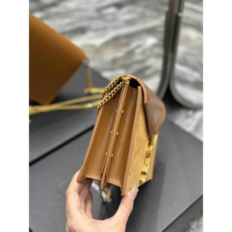 DetailItalian gold buckle cowhide with suede, with stud decoration on the side, and double compartments inside. The most distinctive feature is this metal hardware rotating buckle! ! The bag is light, versatile and unique!