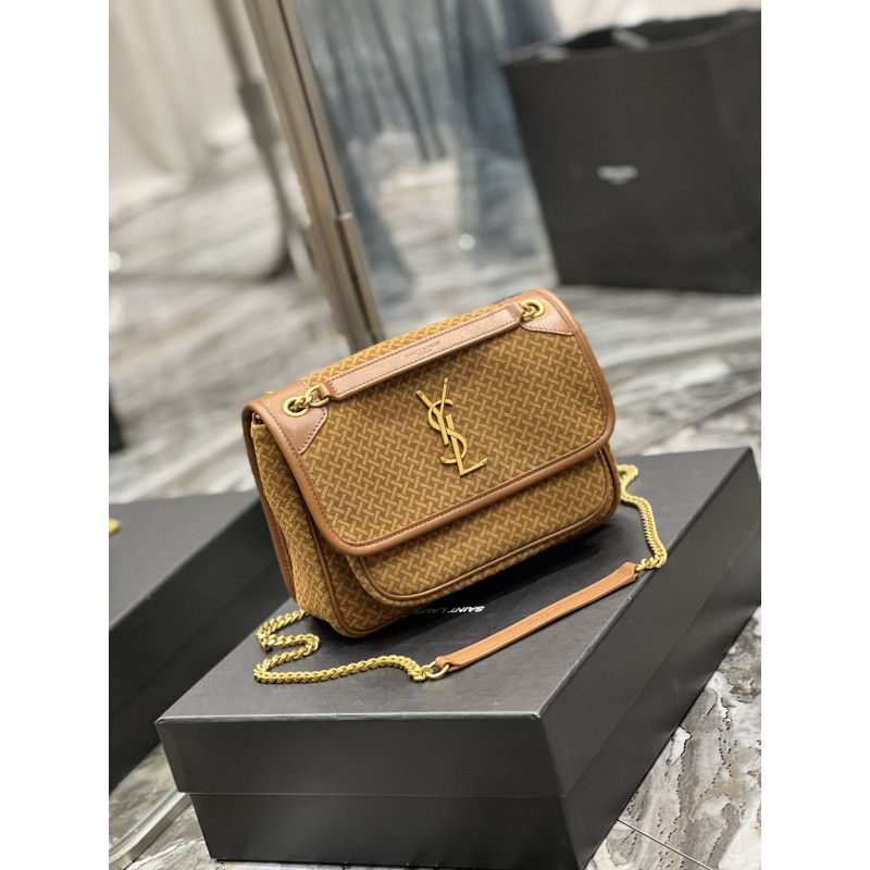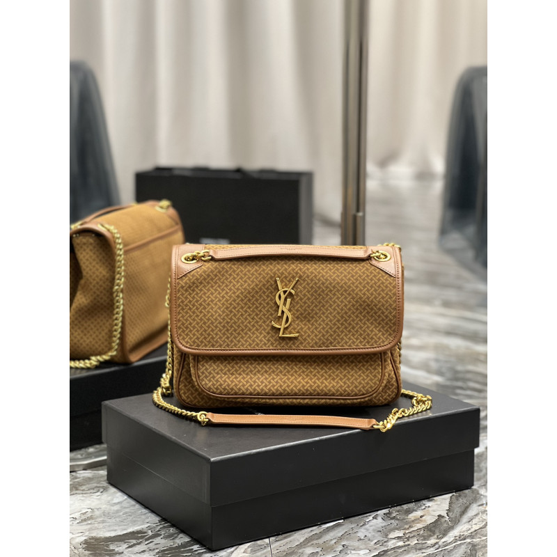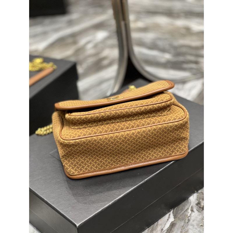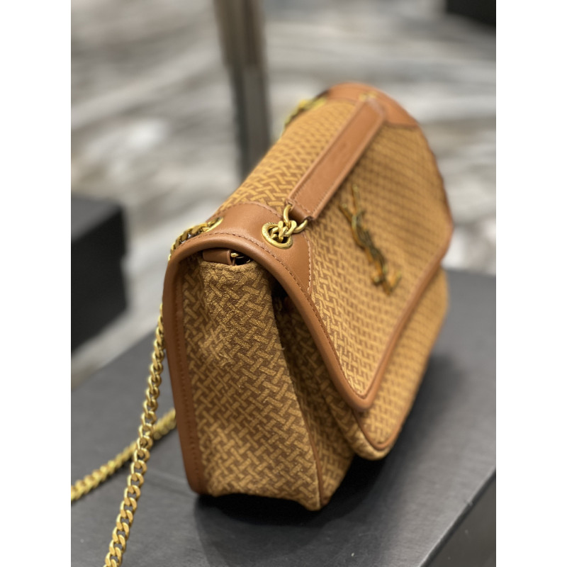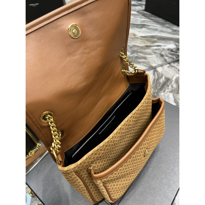 Front flap with magnetic snap closure and signature YSL signature covered in leather. Exterior: 1 rear flat pocket, Interior: 1 main compartment, 1 flat pocket, 1 pocket under the flap, leather lining.