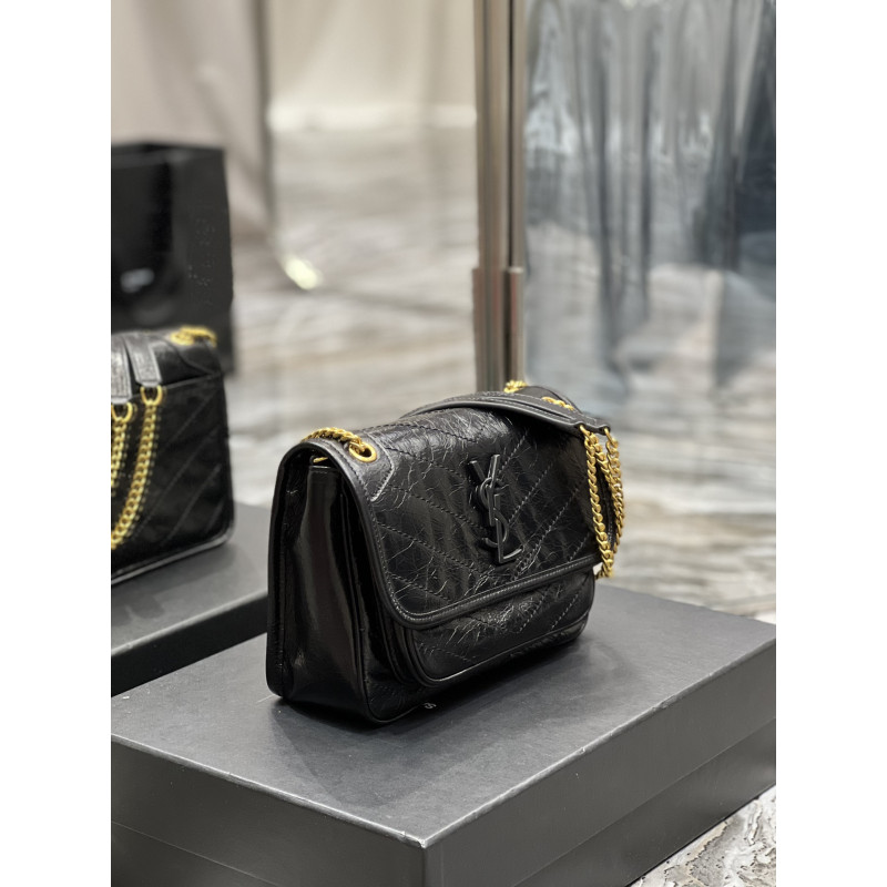 Front flap with magnetic snap closure and signature YSL signature covered in leather. Exterior: 1 rear flat pocket, Interior: 1 main compartment, 1 flat pocket, 1 pocket under the flap, leather lining.