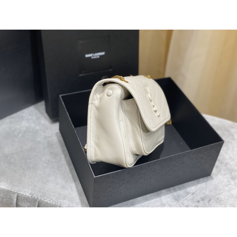 Front flap with magnetic snap closure and signature YSL signature covered in leather. Exterior: 1 rear flat pocket, Interior: 1 main compartment, 1 flat pocket, 1 pocket under the flap, leather lining.