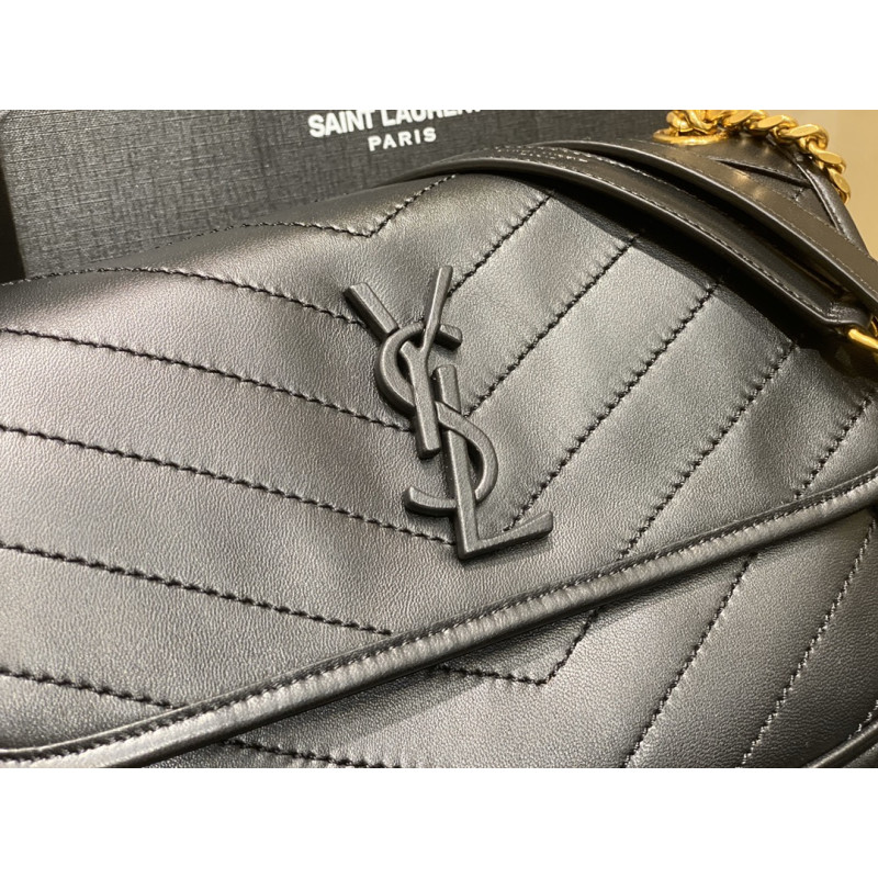 Front flap with magnetic snap closure and signature YSL signature covered in leather. Chain and leather convertible shoulder strap, exterior: a magnetic pocket on the back, interior: 1 main compartment, 1 open pocket, 1 zip pocket, 1 pocket under the flap.