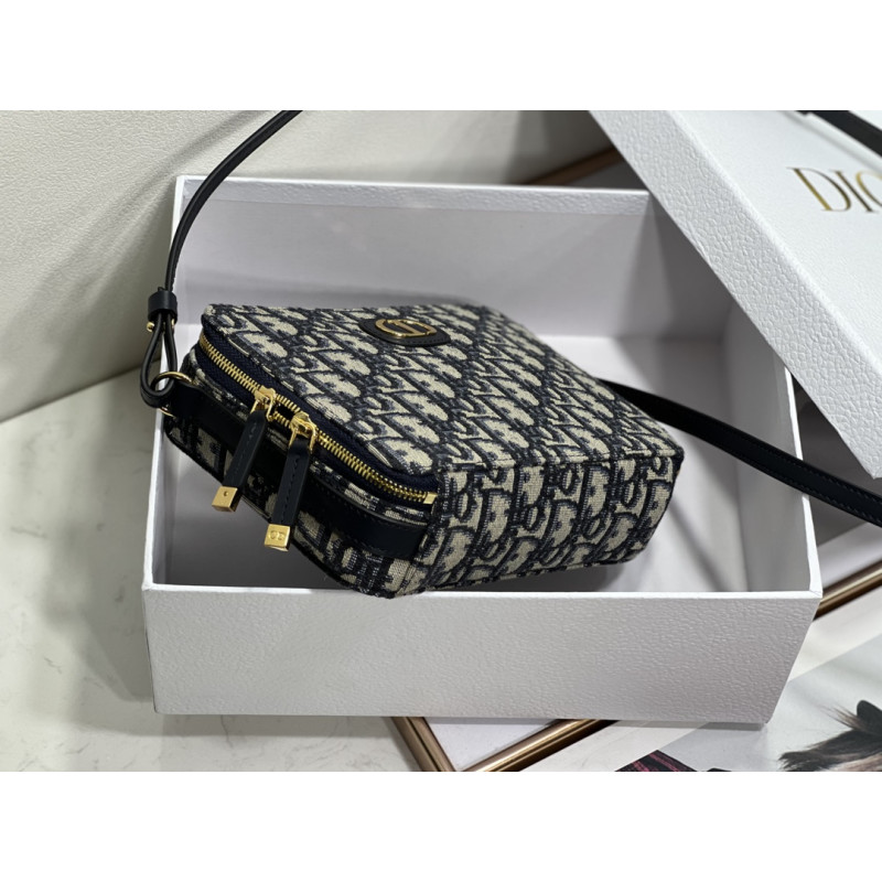 Crafted in blue Dior Oblique jacquard with exclusive Macrocannage quilting effect and spacious compartments (including three card slots) to hold all your daily essentials. The detachable, adjustable chain strap with leather insert is comfortable and adjustable whether worn on the shoulder or cross-body, while the handle makes it easy to carry.
