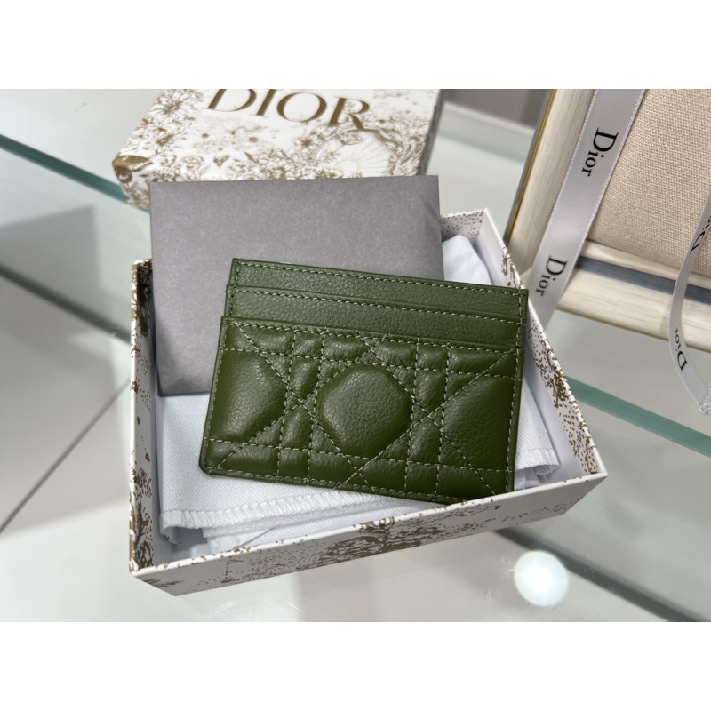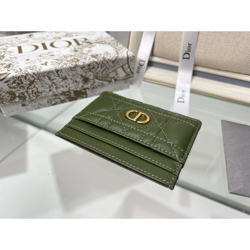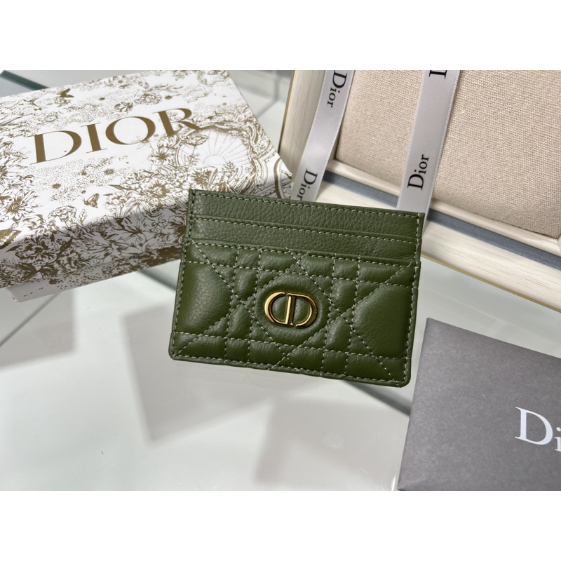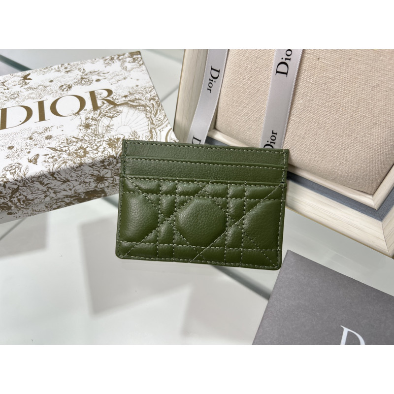 Crafted from soft calfskin with Cannage stitching, it features a 'CD' logo on the front. With five card slots, this sophisticated accessory fits anywhere and coordinates with other pieces.