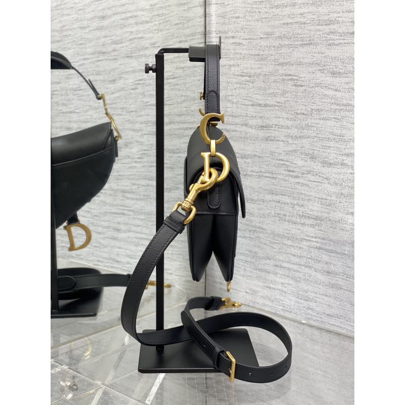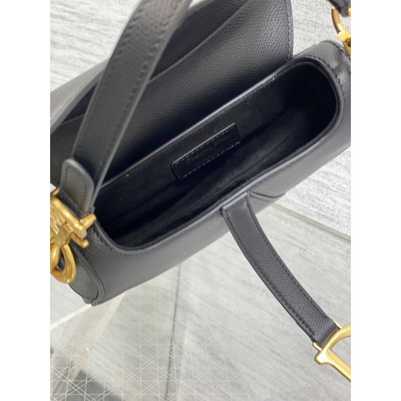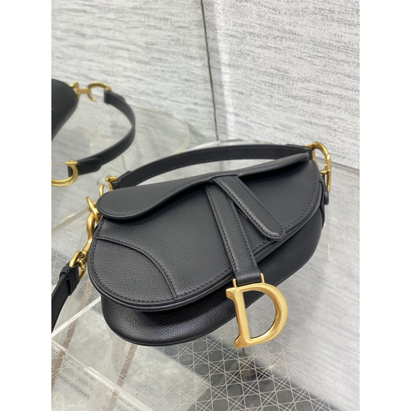 The black small CD Saddle classic bag has taken the fashion world by storm. This newly released version now comes with a slim shoulder strap that is both detachable and adjustable for added versatility..