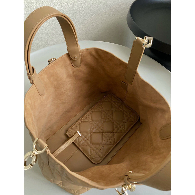 DetailOversized cannage pattern and the customary CD buckle, unlock the buckle to change from a square bag to a large tote bag,
