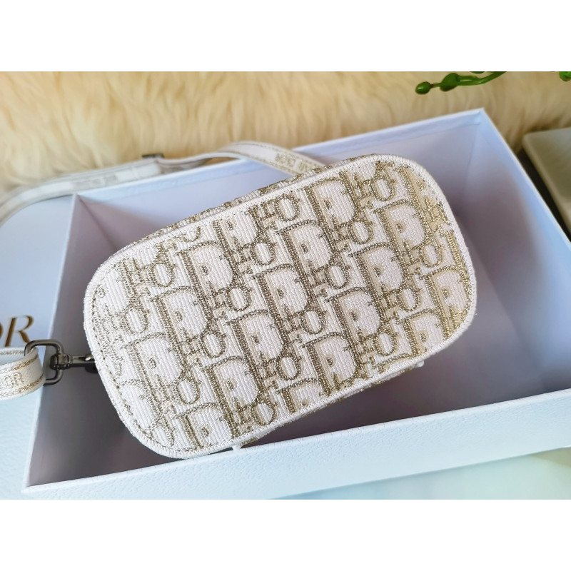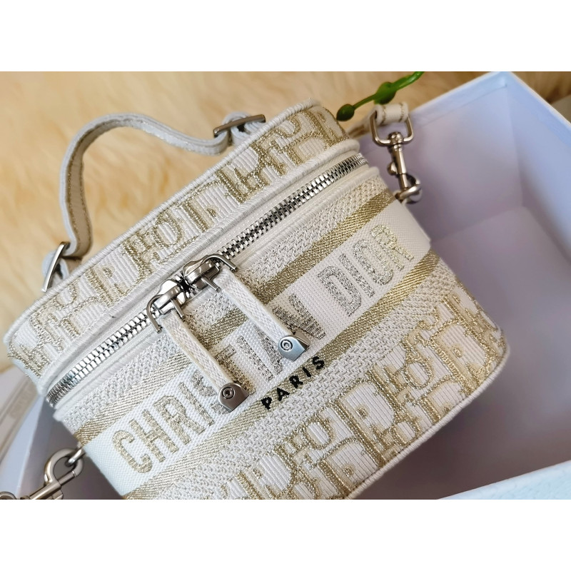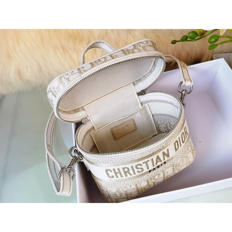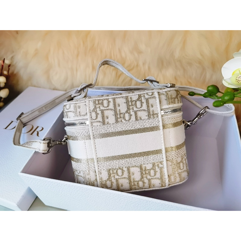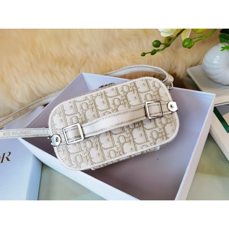 Crafted from Oblique jacquard fabric, it's embossed with the CD signature on the top and bottom. The interior is elegant and spacious with a two-way zip. The sturdy leather top handle and adjustable, detachable shoulder strap make this pouch the ideal everyday companion by hand, over the shoulder or across the body.