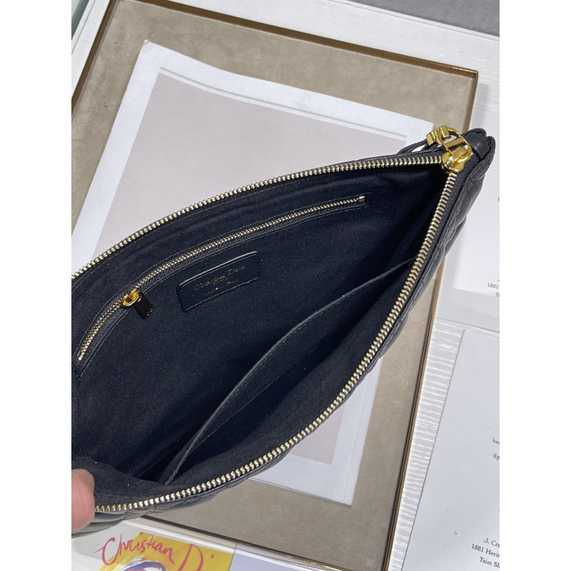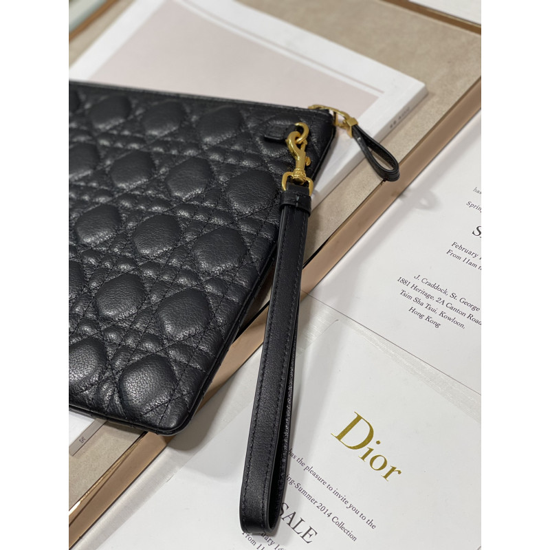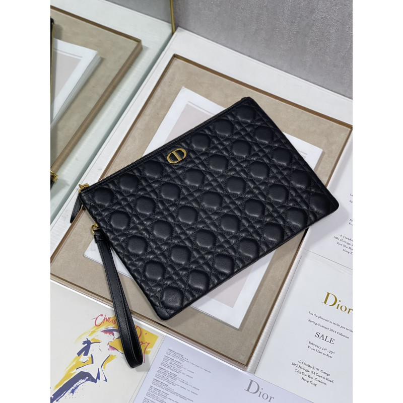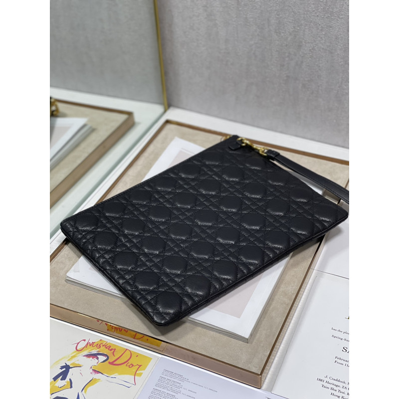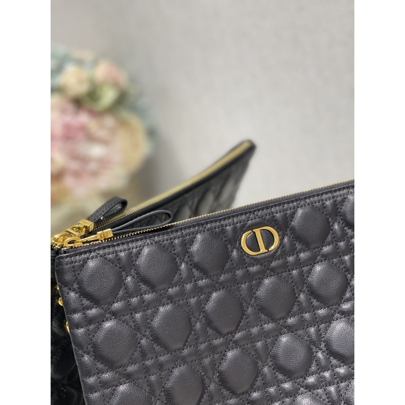 Crafted from black supple calfskin, it features signature Cannage topstitching and 'CD' logo at front. The large pocket holds all your essentials, while the detachable shoulder strap can be carried by hand or carried in a bag.