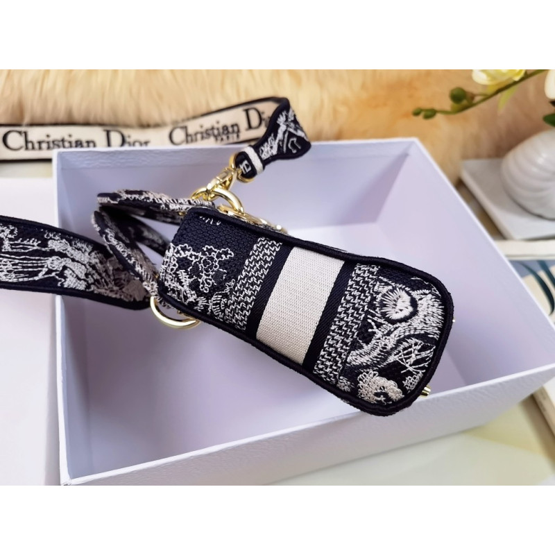 The 'CHRISTIAN DIOR PARIS' logo is embossed on the front, and it is equipped with a large double-sided detachable embroidered shoulder strap, which can be matched with different embroidered shoulder straps, and can be carried by hand or cross-body.