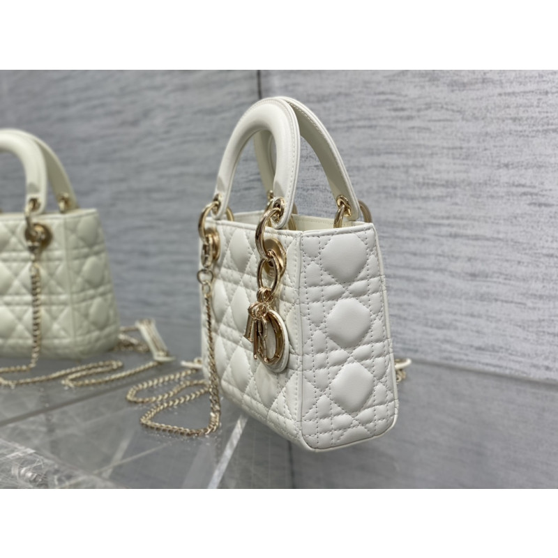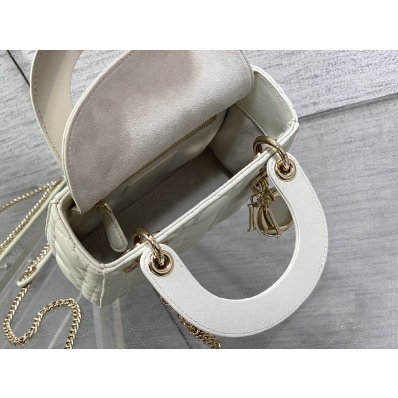 Crafted from lambskin, it's overlaid with cannage stitching for an instantly recognizable quilted texture. Inside is a zipper pocket, with a detachable chain shoulder strap, which can be matched with different embroidered shoulder straps, can be carried by hand or cross-body, as an ideal companion for evening wear.